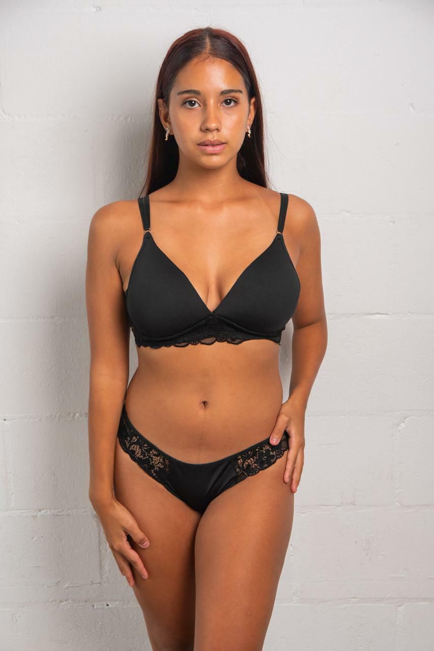 Conjunto confeccionado en microfibra con detalles de encaje. Incluye colaless entera.